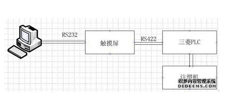 PC机跟触摸屏通过232,采用MODBUS 协议进行连接。以达到监控触摸屏的状态。或通过透过触摸屏PC机直接更改PLC里面的设置。使得控制更加方便。