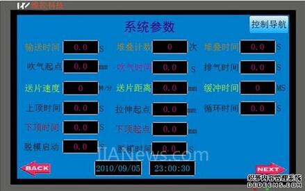上图可以看出:触摸屏可以对输送时间、上顶时间、拉伸起点等进行精确设置。