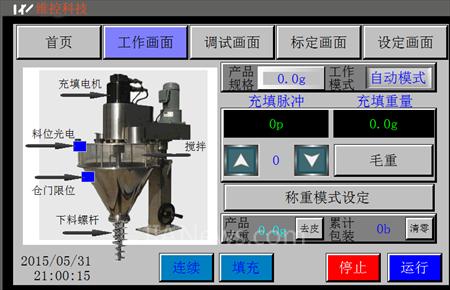 选用维控触摸屏LEVI777A和维控PLC LX3V -1616MT,LX3V-1WT 称重模块