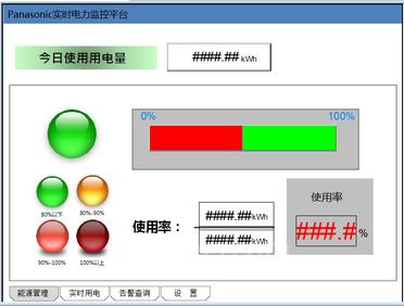 如图,主界面可以非常直观的看出当天的用电情况和电量使用率,其中用电使用率用几种方式来显示,包括多状态指示灯、棒图显示、分数和百分比方式来表现。