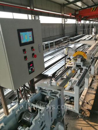 防火卷帘门,两边各有一根钢材导轨,中间是由尺寸相同的多根钢材连接而成。目前,有很大一部分生产设备还是停切或者气缸随动锯切,生产效率低、精度误差大。此设备可实现卷帘门导轨的高精度、不停机锯切加工。
