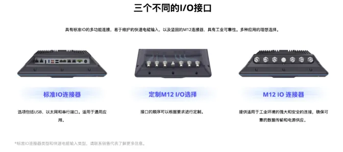 M12可定制I/O接口:支持CAN总线、RS-232/485、USB 3.2等协议,适配多种工业外设。