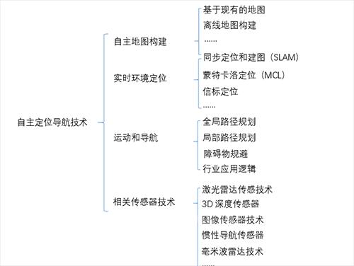 自主定位导航技术按照所实现的功能进行划分的话,可包含如下内容: