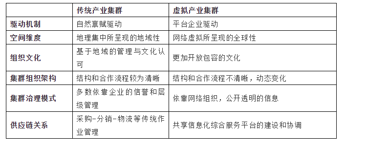 诸如依托海尔COSMOPlat平台集聚的4万余家企业群体就是虚拟产业集群的代表,以及阿里巴巴平台等都可以将其归类为虚拟产业集群。