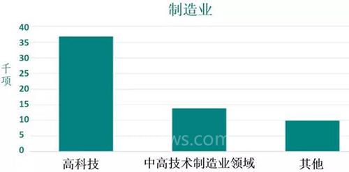 其中高科技制造业领域共37000项专利;中高技术制造业领域共14000项专利;其他制造业领域共10000项专利。(图片来源:NSF)