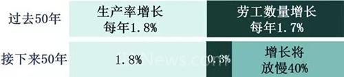 在过去的50年中,生产率提高了1.8%,劳工数量增加了1.7%;然而接下来的50年中,劳工数量增长率预计将降至0.3%(数据来源:Global Growth, McKinsey January 2015)