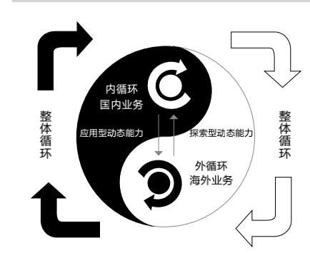 第一,对于一家国际化企业来说,可以将全球供应链的国际板块和国内板块视为外循环系统和内循环系统。如图所示,企业动态能力(探索式动态能力和应用式动态能力)是协同促进内外“双循环”良性互动的强大助力。探索式动态能力(以“自外而内”为代表)敏感洞察国际趋势,深度诊断竞争变化,以此促进内部重大变革。应用式动态能力(以“自内而外”为代表)可以整合国内资源,以此开拓新的海外业务。因此,国际化企业需要强劲的动态能力打通内外循环互动的关节,助力中国国际化企业取得“双循环”良性互动。