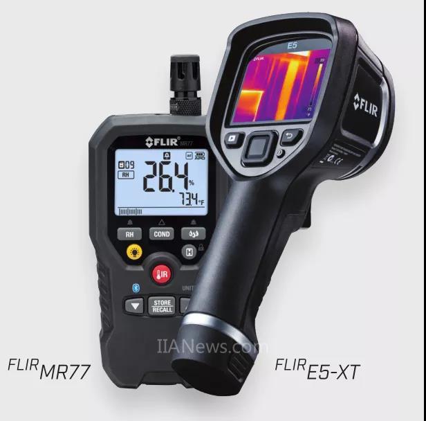 许多建筑公司根据经验发现,FLIR E5-XT是一款经济型检测工具:其像素分辨率为160×120,空间分辨率为5.2mRad,热灵敏度<0.10°C,达到甚至超过RESNET标准。因此,FLIR E5-XT能以更好的精度和灵敏度测量温度,帮助检测人员正确识别水分积聚、漏气和其他住宅外维护结构问题,追踪问题源头。发现问题后,再结合使用FLIR MR77无探针湿度传感器,还可以基于多传感器输入计算空气中的水蒸气量、露点、相对湿度等指标。在此基础上,检测人员可以记录其发现并提出适当的维修建议。
