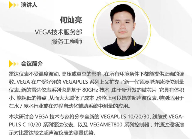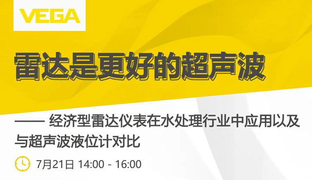 7月21日14:00-16:00,VEGA将举办《雷达是更好的超声波——经济型雷达在水处理行业中应用以及与超声波液位计对比》在线研讨会,届时将邀请VEGA技术专家向广大用户分享全新的VEGAPULS 10/20/30、线缆式VEGAPULS C 10/20系列雷达仪表、以及VEGAMET800系列控制器等产品,并通过现场演示对比雷达较超声波仪表的测量优势。