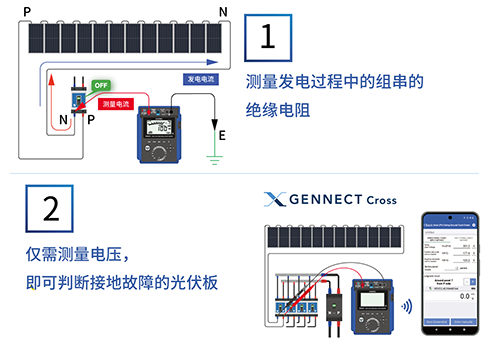 1、利用PV绝缘电阻测量功能实现在发电过程中也能进行测量(仅限IR5051)