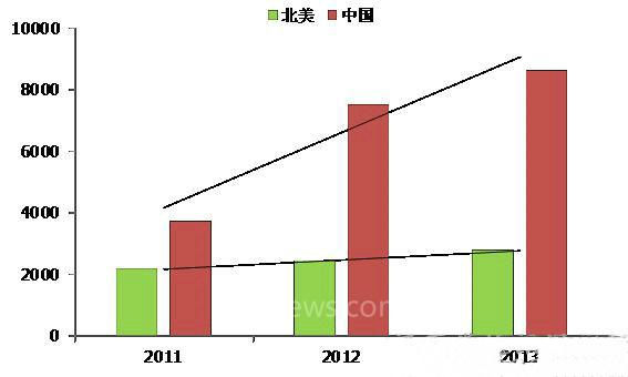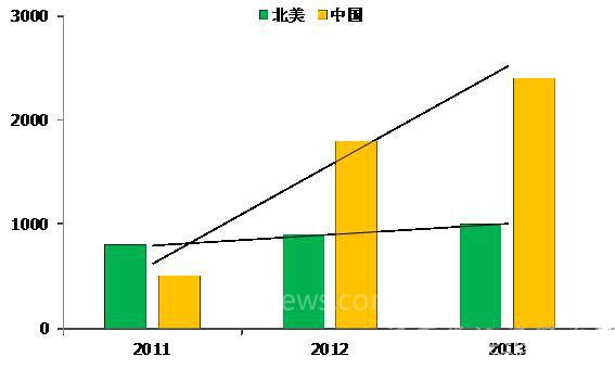 (图一)中国与北美FTTH实际用户数对比(万户)
