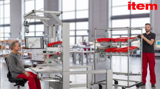 item 的工作台系统可与 D30 精益生产系统完美兼容,无须昂贵的自动化设备投资,即可拥有低成本的简便自动化方案,并且非常容易根据新的工作流程进行调整。