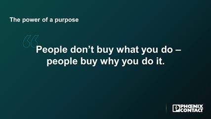 创新是菲尼克斯的灵魂,菲尼克斯一直是技术进步和产业发展的推动者和引领者,更是社会责任和社会进步的践行者和贡献者。“People don’t buy what you do, people buy why you do it.” 从社会责任到使命引领再到商业模式,百年菲尼克斯用心探寻企业存在和发展的根本意义,源于对技术和创新的激情,我们共创可持续发展的世界是菲尼克斯持续发展的原动力;“为惠及人类的可再生能源新未来贡献电气化、网络化和自动化的解决方案”是菲尼克斯人的不懈追求。