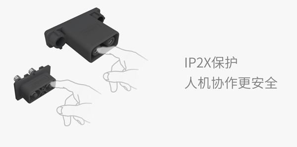安全始终是移动机器人的基本要求。自主移动机器人(AMR)打破了区域限制,人机交互更加频繁,而充电连接器的裸露插针会增加误触风险。AGV-CC6具备IP2X防触摸保护,让人机协作更具安全。
