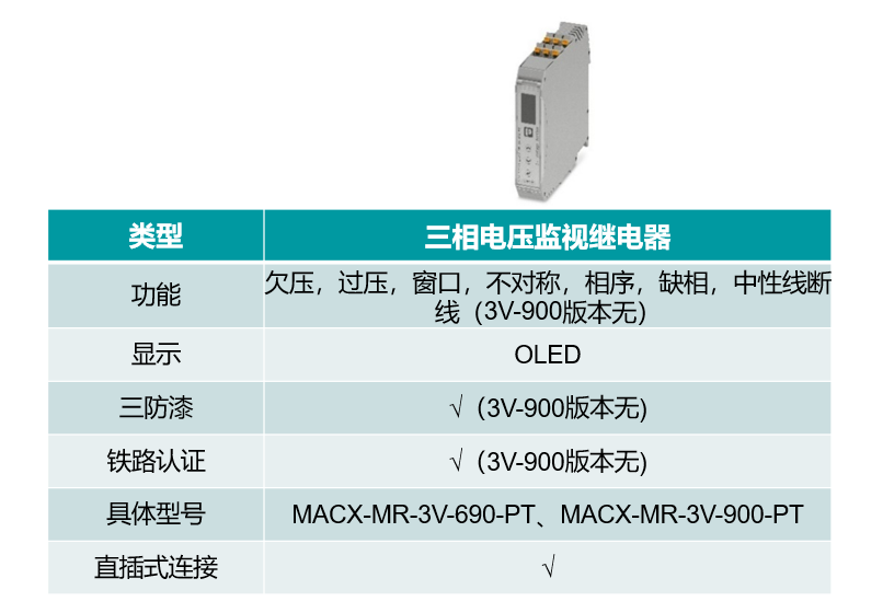 菲尼克斯电气2023年推出的新款MACX-MR系列监视继电器,操作直观,性能可靠,支持故障追溯功能,可持续监测各种电气参数,如电压、相序、电流以及电机线圈温度。适应严苛温湿度环境,安全精确。