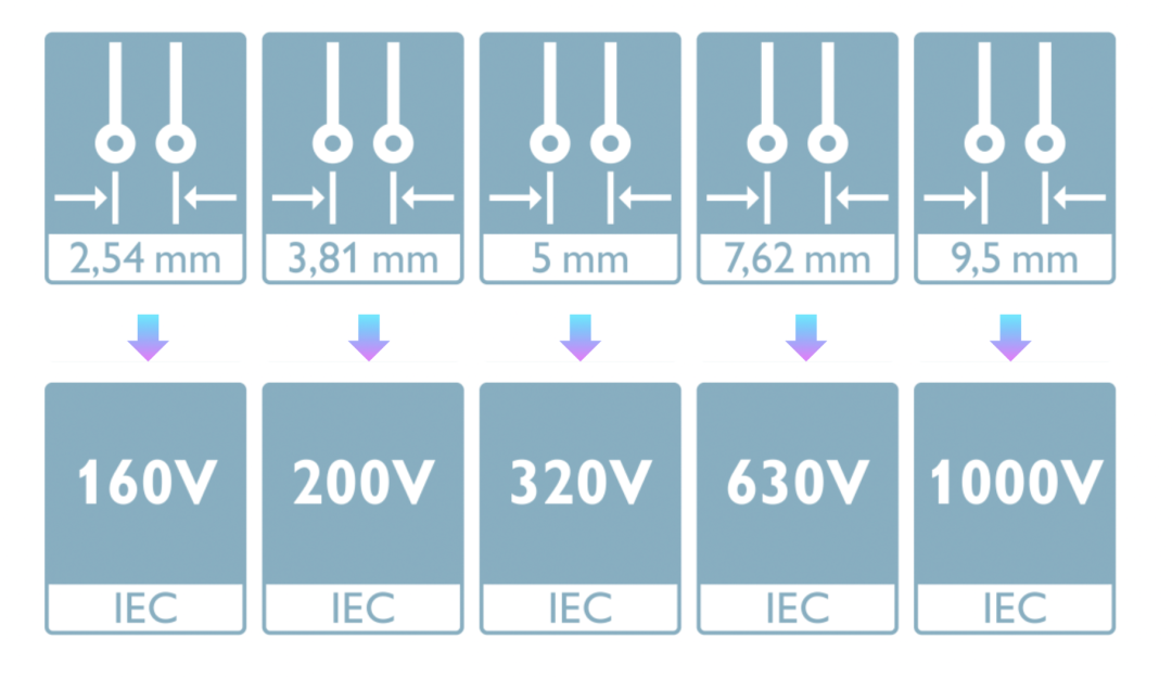在IEC标准以及工业设备内部应用环境中,主要是根据连接器的电气间隙(针间距)标定连接器的额定电压能力,通常实现1000V的工作绝缘能力则要求连接器至少具有9,5mm以上的电气间隙。