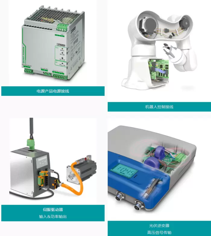 在上述应用场景中,伺服驱动器装置正在往小型化的趋势发展,但同时在功率输出依然有着更宽泛的要求,因此SPC 4连接器凭借其最大能承载1000V&22A的冗余功率传输性能,并且6,35mm的紧凑尺寸以及多样的锁紧尤其适合驱动器越发宝贵的面板空间中应用。