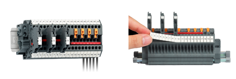 直通型端子采用高达3位的桥接井设计,配合插拔式桥接件,可轻松实现连续桥接的功能;
