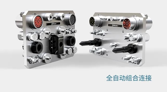 随着一体化压铸技术的进步和普及,压铸件体积日益增大,已开发的模具重量超过百吨,对于模具拆换提出了更高要求。压铸模具的温度控制回路涉及油温、水温、点冷、液压、电气等数百条回路,人工单个回路对接会损耗大量时间,以7000T压铸机为例,接管路时间需要约15小时,带来高额的停机和人工成本。