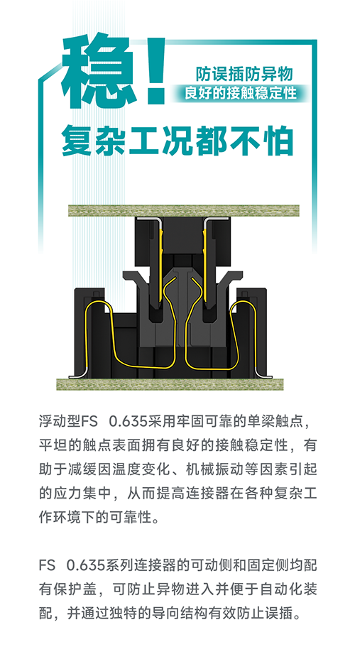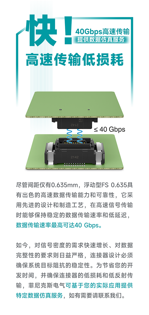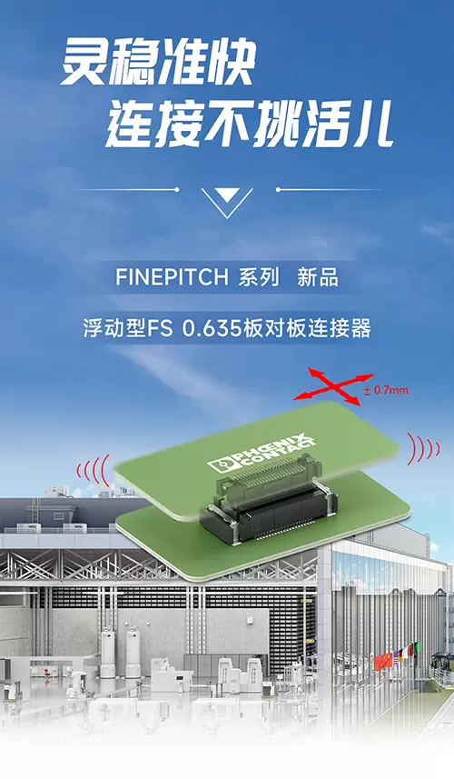 为应对这两大挑战,菲尼克斯电气为您带来FINEPITCH系列新品 – 浮动型FS 0.635板对板连接器。