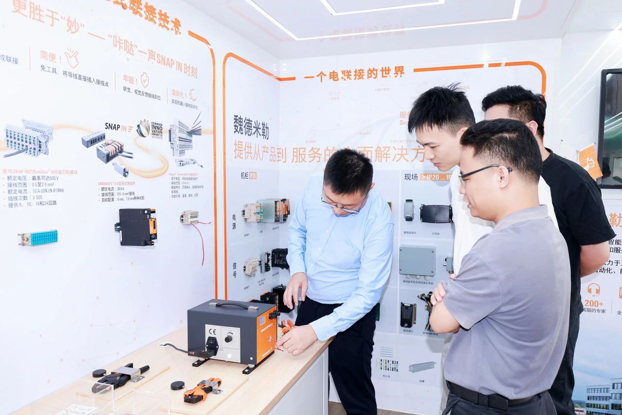 巡展聚焦当前行业的智能化、绿色化需求,以静态和动态相结合方式生动展示了魏德米勒从传统电气联接到自动化、数字化的全面创新能力,以及在传统和新兴行业的应用实践。
