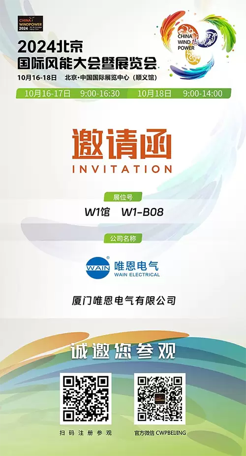 过去的一年,中国风电产业再次以卓越的表现证明了其全球领先地位。一系列的辉煌成绩,不仅是中国风电企业技术实力和市场拓展能力的体现,更是对全球绿色能源转型的重要贡献。唯恩将在此次CWP2024中,展示WAIN为风电行业提供的可靠的电气连接方案。