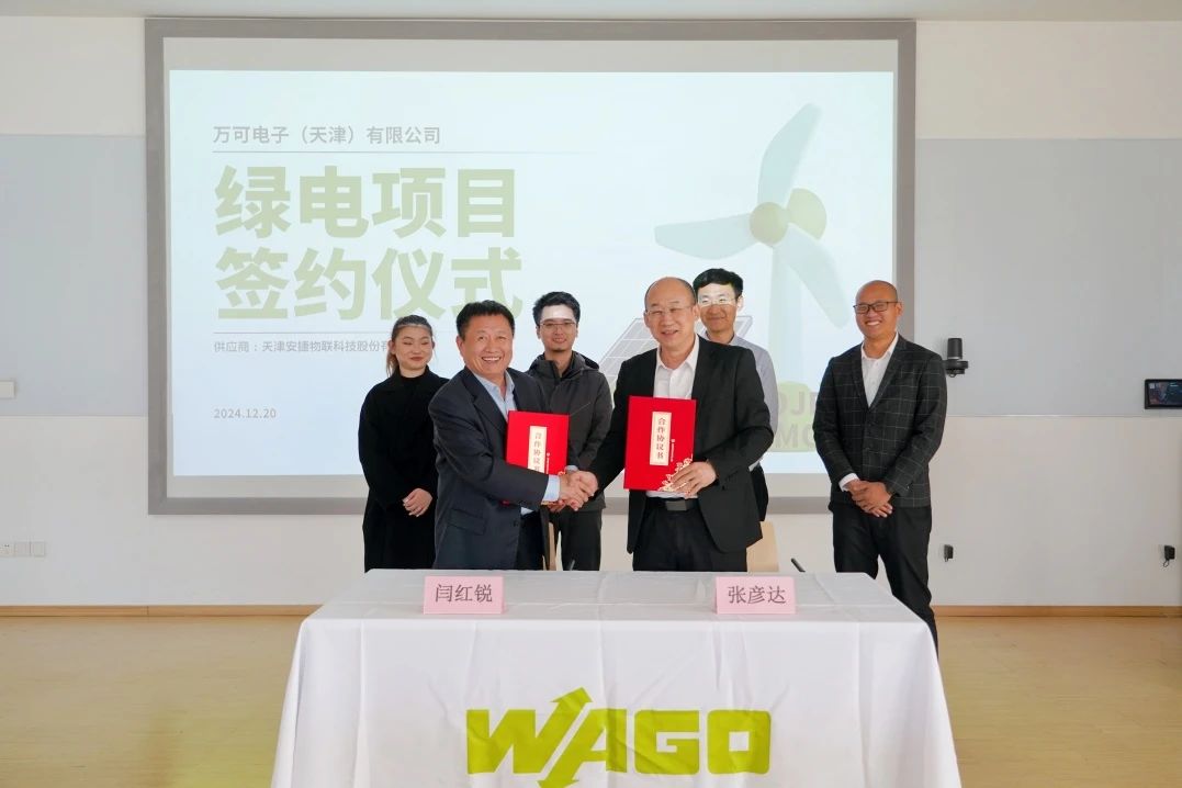2024年12月20日,万可电子(天津)有限公司(以下简称万可中国)携手天津安捷物联科技股份有限公司,在万可中国天津工厂举行了绿电项目签约仪式。绿电项目的签署,标志着万可中国对公司可持续发展战略的深入践行,为打造绿色低碳企业、提高绿色竞争力迈出坚实一步。