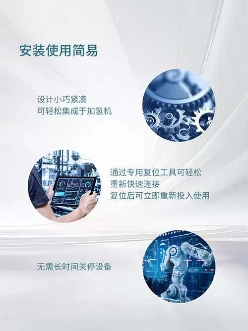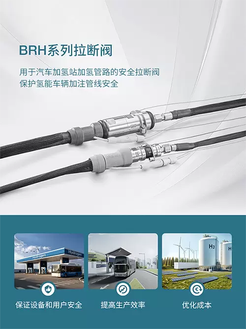 当车辆意外驶离但加氢枪还未取下时,拉断阀可立即断开连接,将加氢机和软管分开并自动关闭气路,保证氢气罐、加氢机、加氢枪设备免受损坏,确保用户安全。