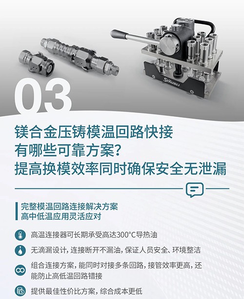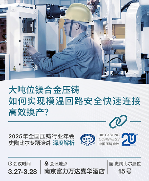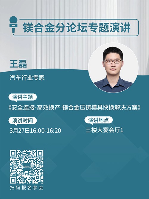 3月27日 16:00-16:20,史陶比尔将在大会镁合金分论坛,聚焦镁合金压铸的发展态势,带来专题演讲,深度研讨“大吨位镁合金压铸如何实现模温回路安全快速连接、高效换产”,期待与您见面交流~
