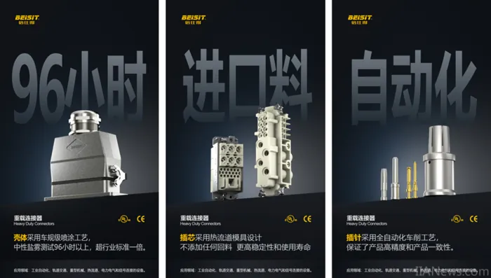 倍仕得重载连接器按照IEC61984电气安全规范设计,可用于电源、信号和数据的快速可靠的连接,倍仕得重载连接器能减少接线出错率,提升设备安装效率,方便产线和设备快速改造或维护,也能在恶劣的环境下使用。