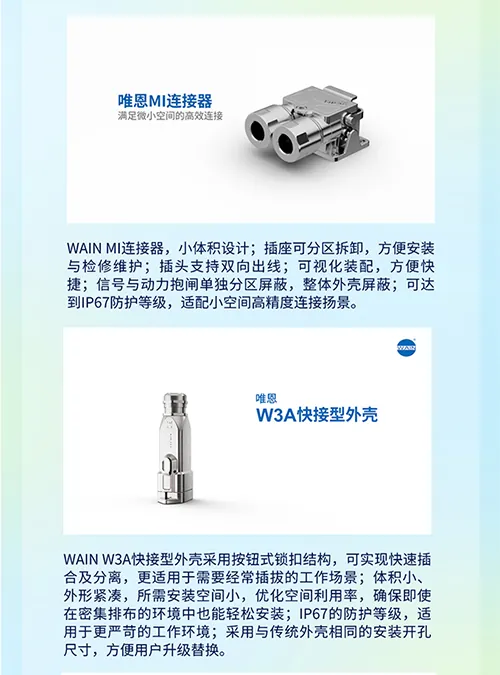 作为在自动化、工业制造等关键领域深耕多年、底蕴深厚的品牌,WAIN始终以创新为驱动,不断突破技术边界。此次展会,WAIN将凭借深厚的技术积淀与持续的创新活力,携多款核心连接器产品重磅登场。