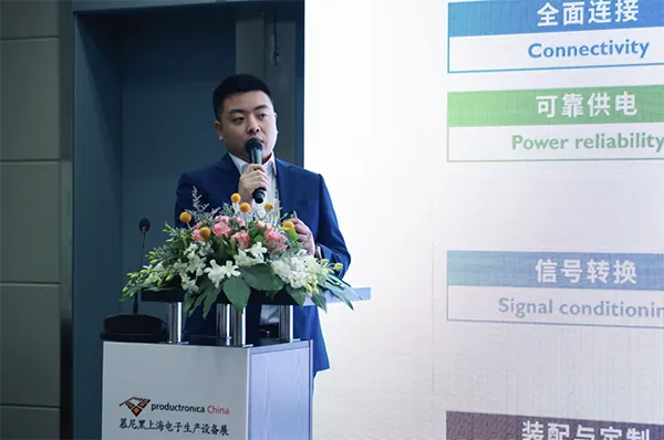 3月26日,2025电子及半导体智能制造高峰论坛在上海启幕,菲尼克斯电气中国公司机械制造行业经理梁斌发表《卓越电控助力电子和半导体设备开发》主题演讲,系统阐释了菲尼克斯电气针对半导体设备制造的全场景解决方案。