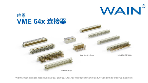 VME 64x是最高的并行VME总线,支持高达320Mb/s的数据传输速率,应用在工业控制、军事系统、航空航天、轨道交通、医疗设备及半导体制造等行业。WAIN的VME 64x系列产品严格遵循VME 64x标准规范设计,同时向下兼容上一代VME标准,为相关行业提供了稳健且值得信赖的连接解决方案。