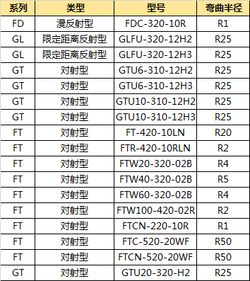 光纤单元提供9种头部类型(螺纹型,圆柱型,扁平型,L型,塑料型,垂直型,不锈钢型,U型,区域检测型)和7种线缆类型(标准型,耐弯曲型,耐断型,耐热型,真空型,防水型,内置镜头型),适用于各种环境的灵活安装。