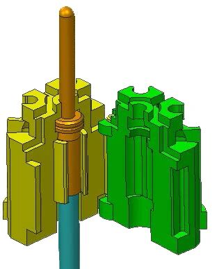 ②将压好线的插针先装进中间孔,然后扣合好