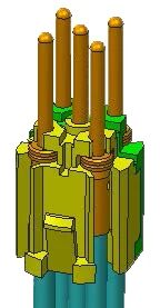 ③再将其余4根针也依次装进插芯中