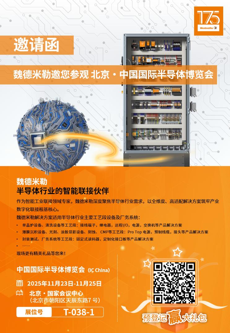 扫描下方二维码登记信息,莅临 T-038-1 魏德米勒展台,解锁半导体智造联接新可能!
