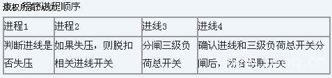 其中CPU 07KR51装于母联柜,4台扩展模块ICM14F1分别装于两个进线柜和两个三级负荷总开关回路。CPU 07KR51与扩展模块 ICM14F1之间通过CS31总线连接。进线回路把进线断路器状态、故障信号、低电压信号同时输入扩展模块 ICM14F1;三级负荷总开关回路将开关状态、故障信号输入扩展模块 ICM14F1;母联回路向CPU 07KR51输入母联断路器状态、故障信号和控制方式(自复或者手复)。PLC的输出线圈依次控制进线、母联和三级负荷回路开关的合分。PLC根据每个输入信号的状态,判断是否发生低电压,并判断输出继电器是否需要动作,实现两进线一联络系统的备自投切换。下表为PLC进行备自投的程序进程顺序: