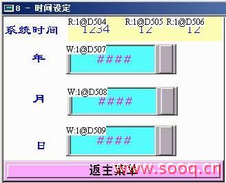 在人机界面内通过宏指令读出系统设定时间,分别赋值给不同的数据寄存器,如图8所示,运行过程中通过自定义输入时间年月日和系统本身时间进行监控比较,程序判断当系统时间超过设定时间时,系统自动停止运行,如图9所示。