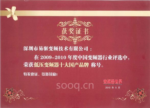 链接:庆祝易驱公司于2010年2月在“2009年度中国自动化网年度评选”中荣获变频器行业“逆风飞扬奖”,该奖项证明了2009年在金融危机的影响下,易驱公司在全体员工的努力及广大新老客户的大力支持下,公司取得了骄人的成绩。