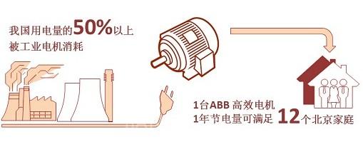 一台ABB高效电机一年节电可供约12个北京家庭一年用电量