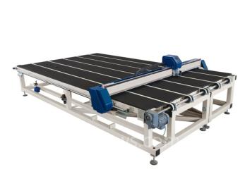 338BKS 切割机在上片和剥片环节中,将自动化和人工操作完全地结合在一起。能够处理的最大玻璃尺寸是 3810 x 2750mm,玻璃厚度范围在 2 ~ 19mm,最大运输重量为 630kg。钢制的切割桥由最先进的马达驱动,其最高速度可以达到 100m/min,加速度为 2m/s²。无论是操作头的直线还是异形定位精确度,都可以达到+/- 0,20mm。它可以处理所有复杂的设计,包括直切和离线切割。