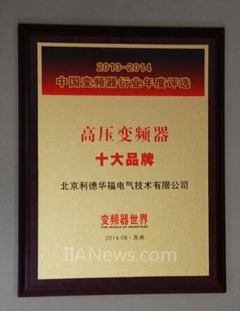 利德华福在第十一届变频器行业企业家论坛上获得组委会颁发的“2013-2014年度高压变频器十大品牌”奖项,这是利德华福第十次荣膺此奖项。