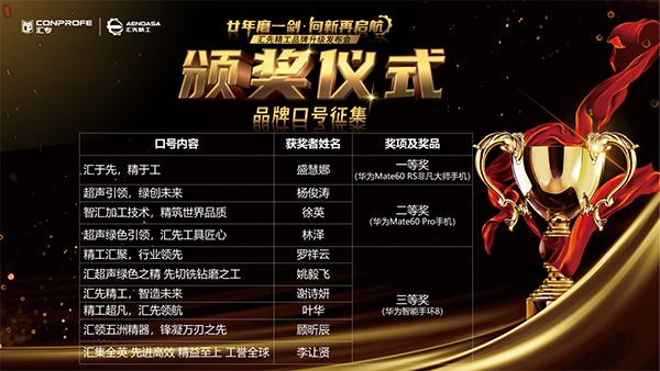 自“汇先精工”品牌口号征集活动启动以来,获得了全网用户的热情参与。根据汇专经营决策委员会严格、公平的评审投票,最终选出了十条创意口号,现公布获奖名单如下: