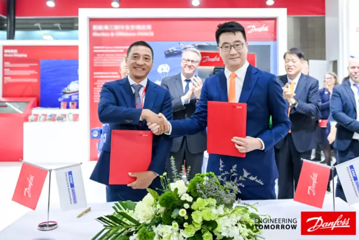 开展当日,丹佛斯宣布与中船瓦锡兰电气自动化(上海)有限公司签订合作备忘录,双方将在侧推驱动、常规推进、直流组网推进等领域构建长效合作机制,结合市场资源基础,发挥各自优势开发客户资源,联手打造高品质项目。丹麦工商业和金融事务部大臣Morten Bødskov、丹麦驻华大使马磊、丹佛斯中国区总裁徐阳、瓦锡兰中国总裁韩建丰等见证了签约仪式。