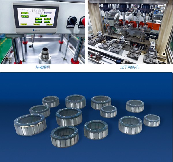 2024年3月,FM无框电机成功量产,采用全自动产线,产线具备高产能、高精度、高质量,高智能化的四高特色,实现无人生产,每分钟可产电机1台,年产能达30万台。