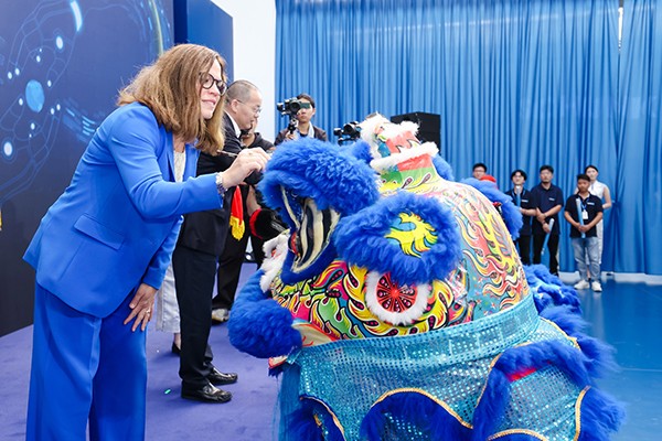 雄克首席执行官Schunk女士和闵行区委副书记唐劲松先生为雄狮点睛