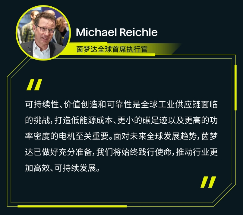 未来,茵梦达将持续提高研发的投入,以及全球化的市场战略布局,不断加强绿色制造、精益制造水平,将电机与传动领域的创新产品和全流程解决方案带给全球更多用户,加速推进电机与传动领域迈向高效、可靠、绿色、创新的新未来。