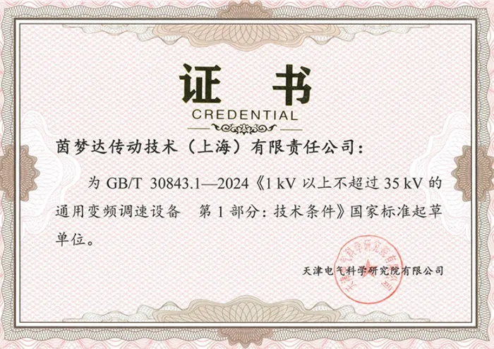 茵梦达传动技术(上海)有限责任公司作为电力电子与变频调速领域的行业标杆,深度参与国家标准的制定与革新,主导起草了GB/T 30843.1-2024《1KV以上不超过35KV通用变频调速设备技术条件》,引领高压变频设备技术规范升级。