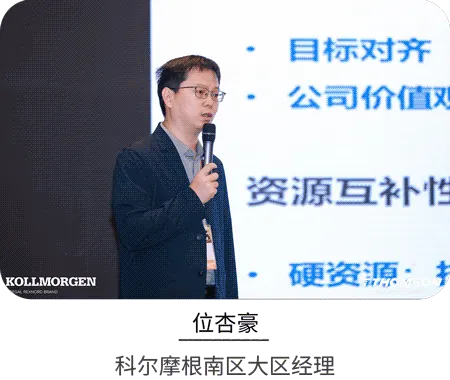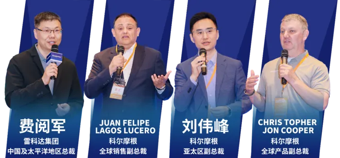 科尔摩根全球销售副总裁Juan和Chris也亲临大会现场,与科尔摩根亚太区副总裁刘伟峰现场共同为大会做了主旨演讲。刘伟峰强调:“为了更好地服务好中国客户,在科尔摩根我们有两条主线。本土化In China for China,是科尔摩根从九十年代在华投资以来坚定不移的实施路线,不断提升产品本地化比例,同时也不断增强针对中国市场的本地化研发能力,实现研产销一体化;全球化With China for the World,也是近些年来,科尔摩根所践行的另外一条主线,通过科尔摩根基于全球多元化市场的理解,全球化的产品平台,以及全球化的分销和服务网络,我们能够更好地帮助中国的客户,来开拓更加广阔的国际市场。”